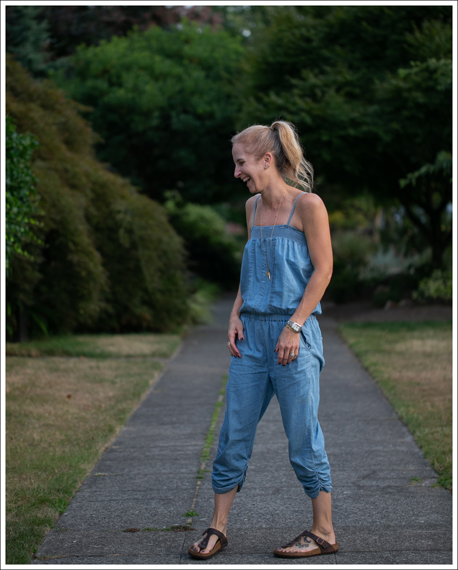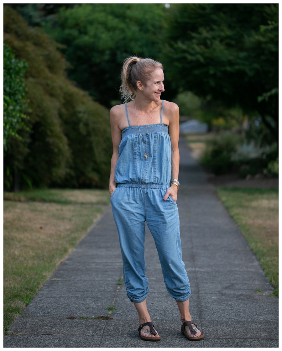 Of all the clothes I have (and the amount is a little ridiculous…), this jumpsuit gets the most compliments! Might be because I wear it so much haha. But, it’s SO comfy, super easy one step dressing, and soooo nice to wear in the HEAT!