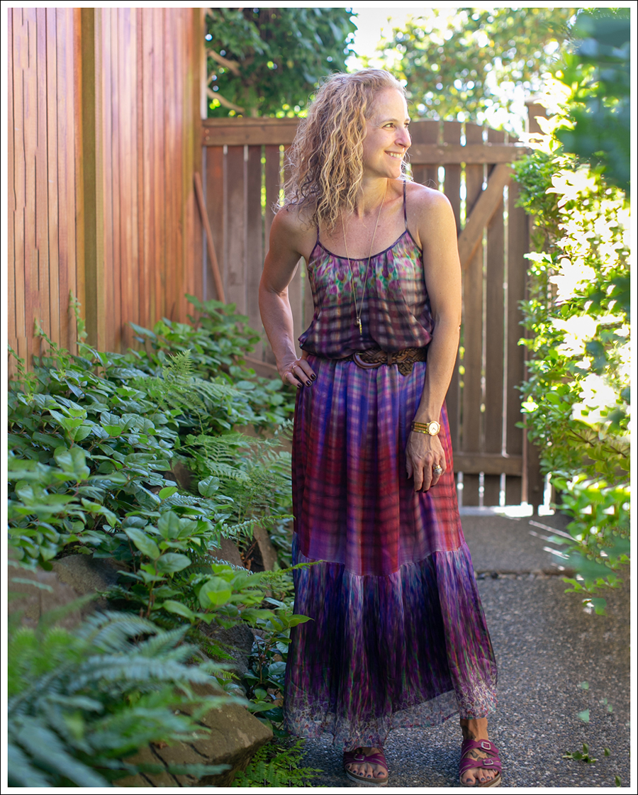 I’d been wanting to wear this maxi dress, but was worried I’d look too dressed up. Am I the only one that worrieSO..I put a vintage braided belt on and some Birkenstocks, and dressed it down a little!