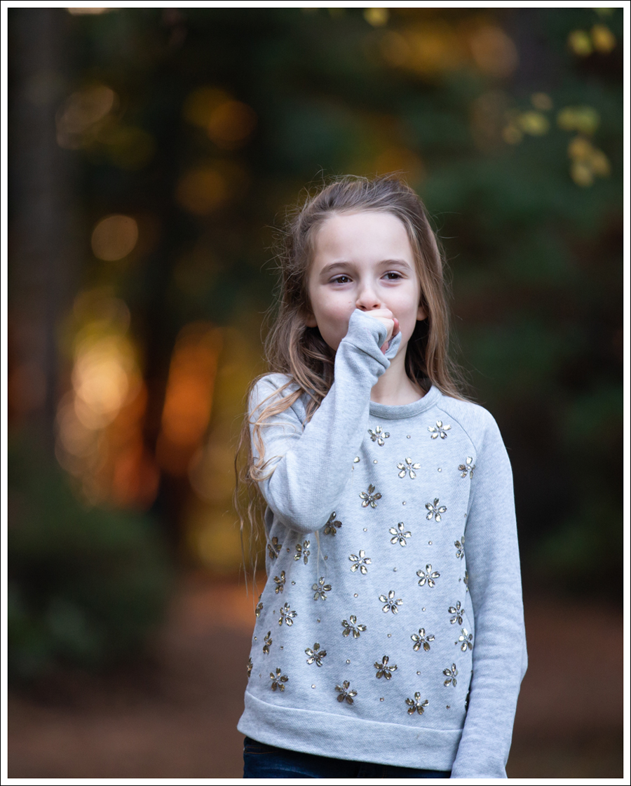 Maya is actually wearing boys jeans.Β I am not afraid to buy from the boys section when thrifting!Β Roll them up, and they are super cute and comfy boyfriend jeans!