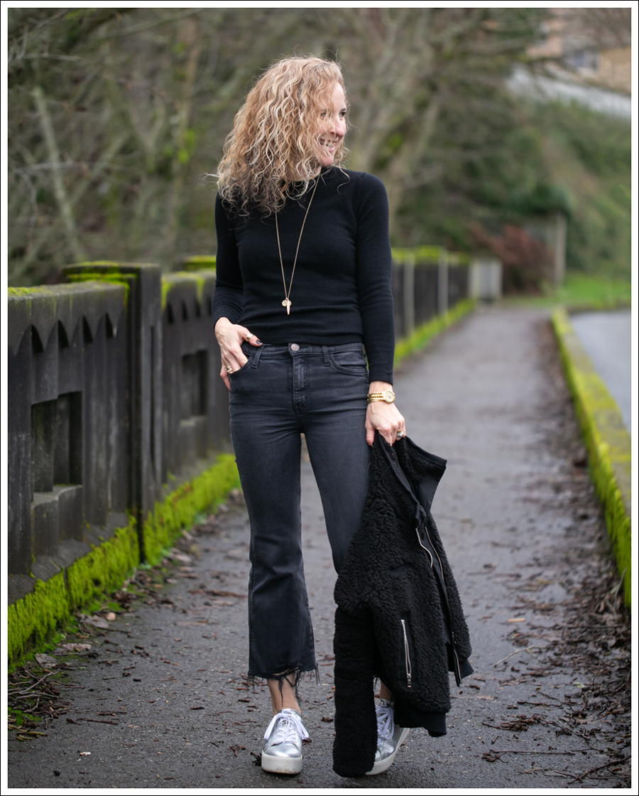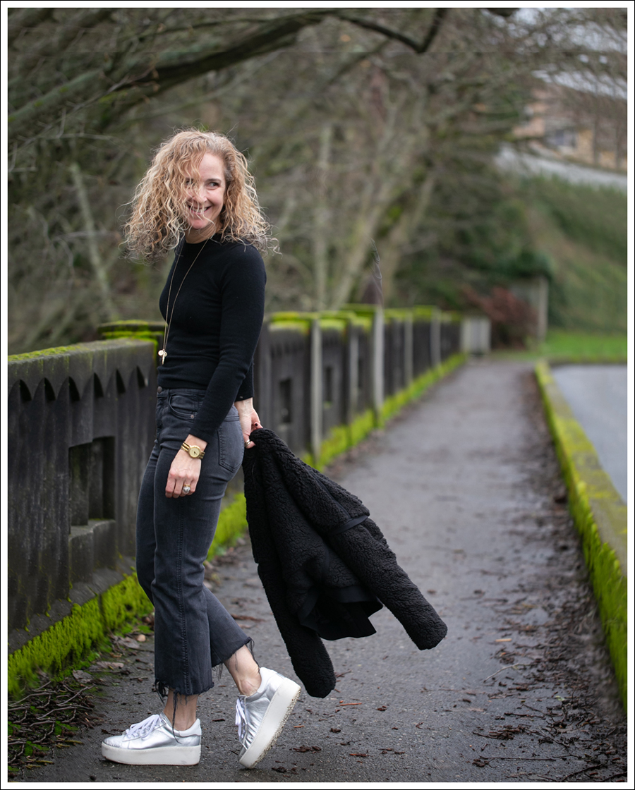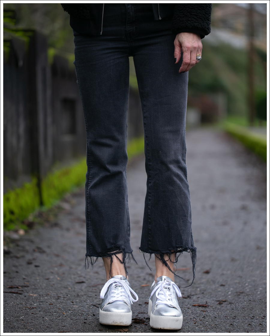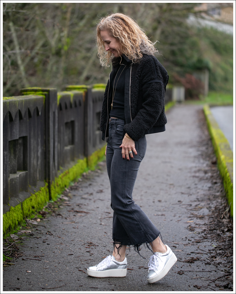 And…a silver platform sneaker…both comfy yet adds some fun!