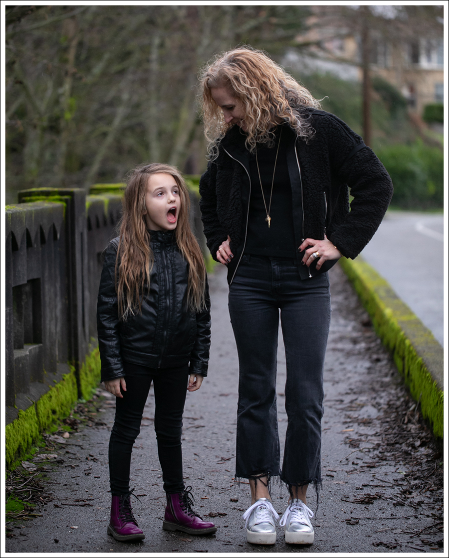 I actually took the above pictures right before picking Maya up from school. I actually shot this look and then swapped out my shoes and jacket for a “day to night” look (coming soon). I did all that in a whopping 15 minutes haha.