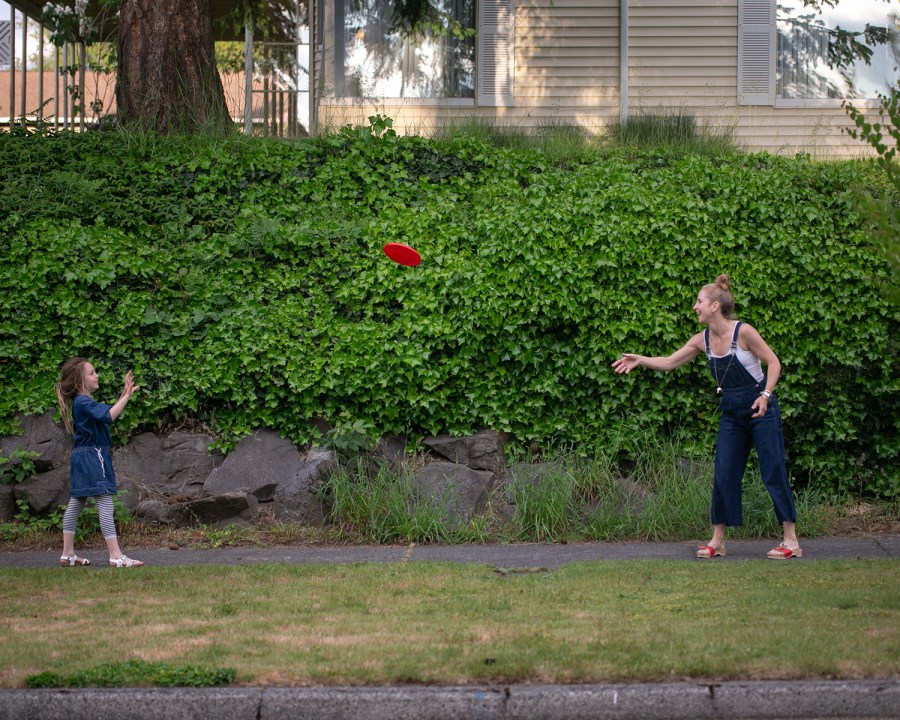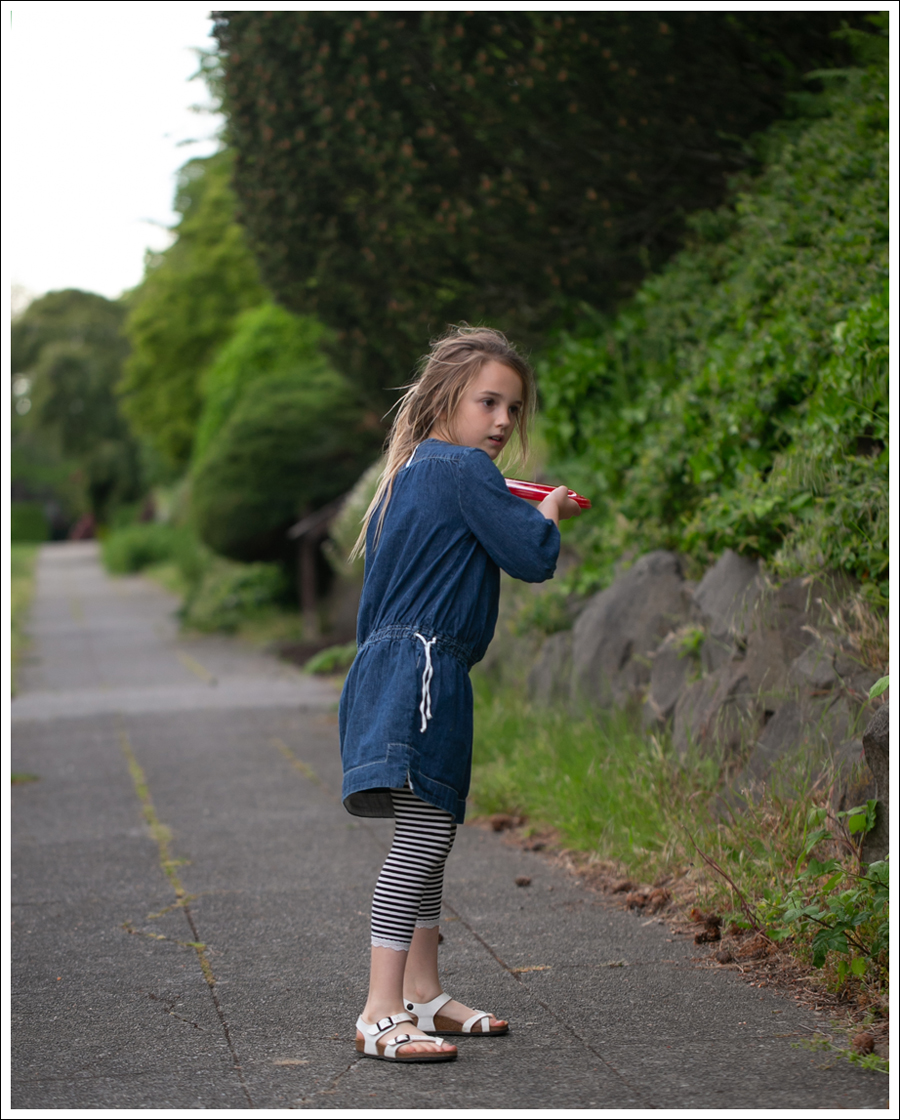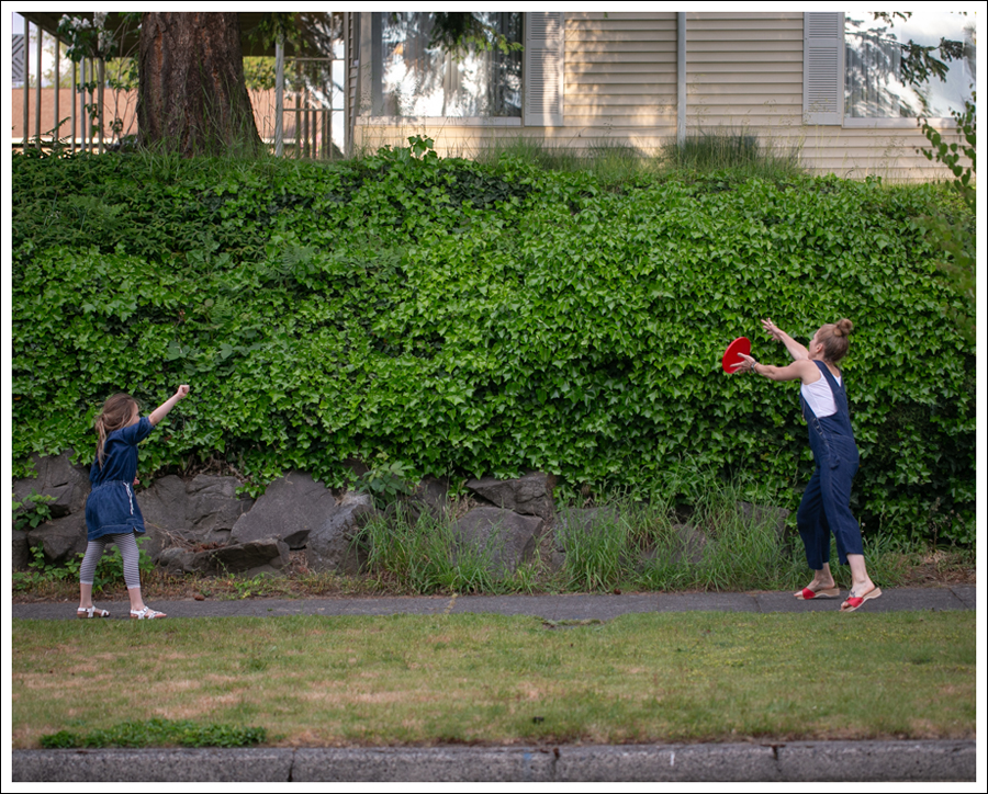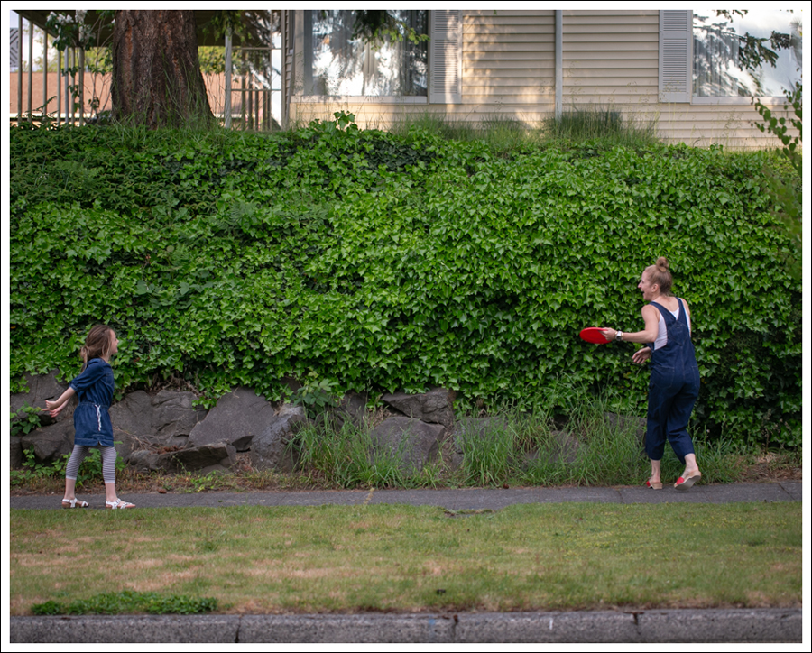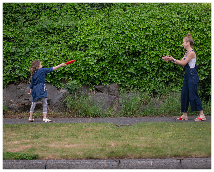 Maya got this frisbee at the YMCA “Healthy Kids Day”, and we finally went out and practiced.