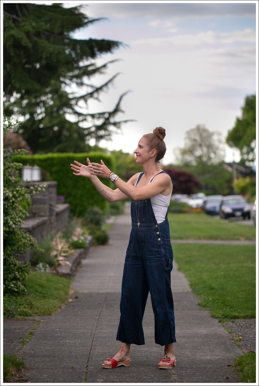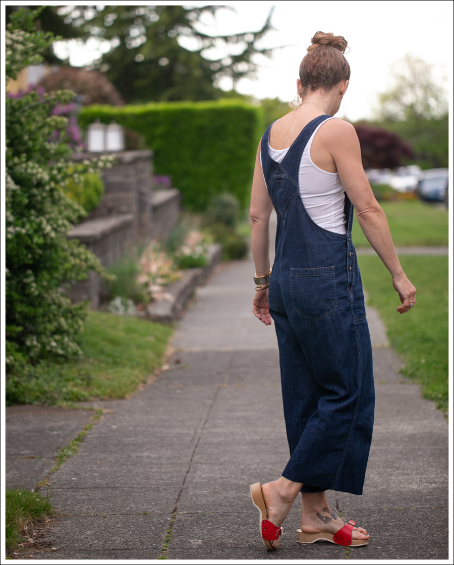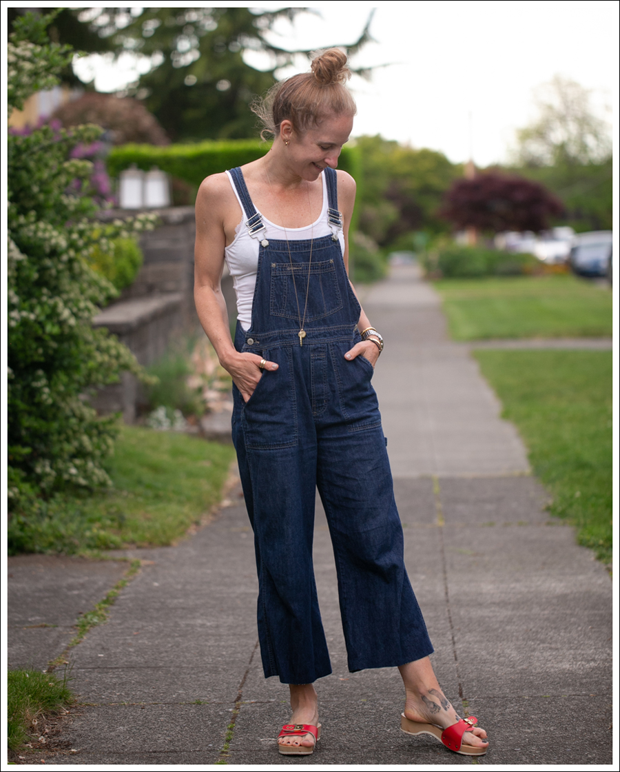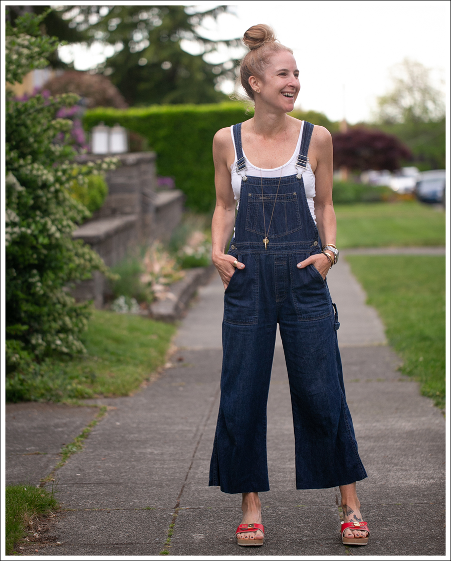 Funny story about these overalls is that I had this exact pair in the 90’s!! SO bummed I gave them away at some point, but found them again a few years ago thrifting! They’ve always been a weird length on me though. Not long, but not cropped enough. I’ve thought about chopping them SO many times, but could never pull the trigger. Until…the Free People overalls. Then….Snip snip! And I LOVE THEM!!
