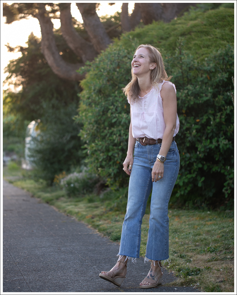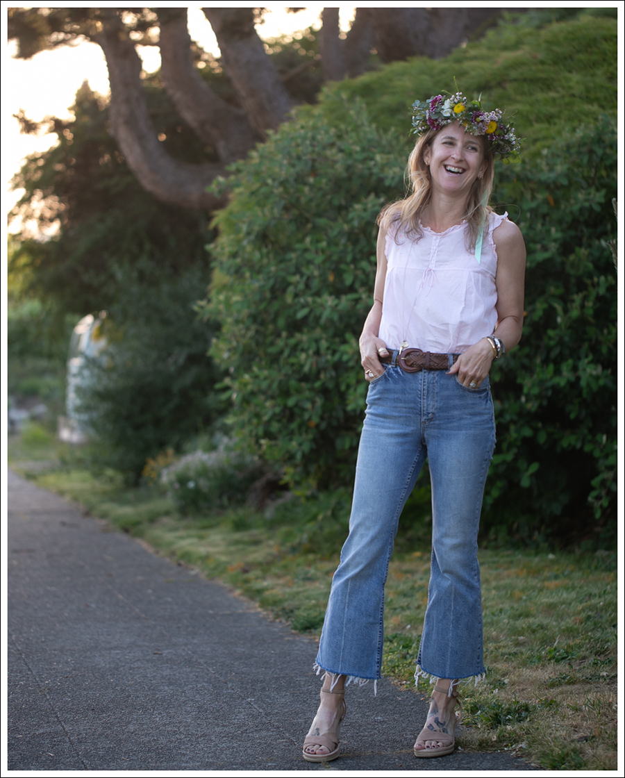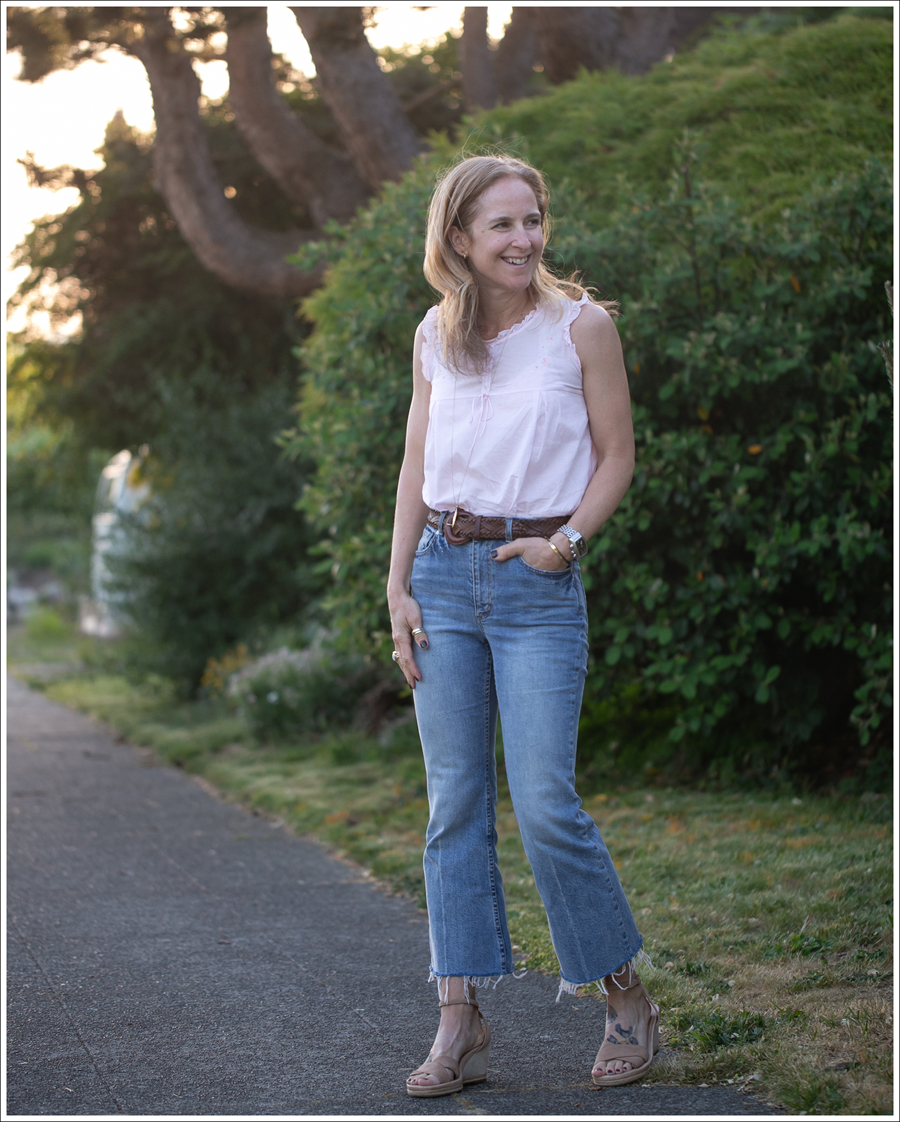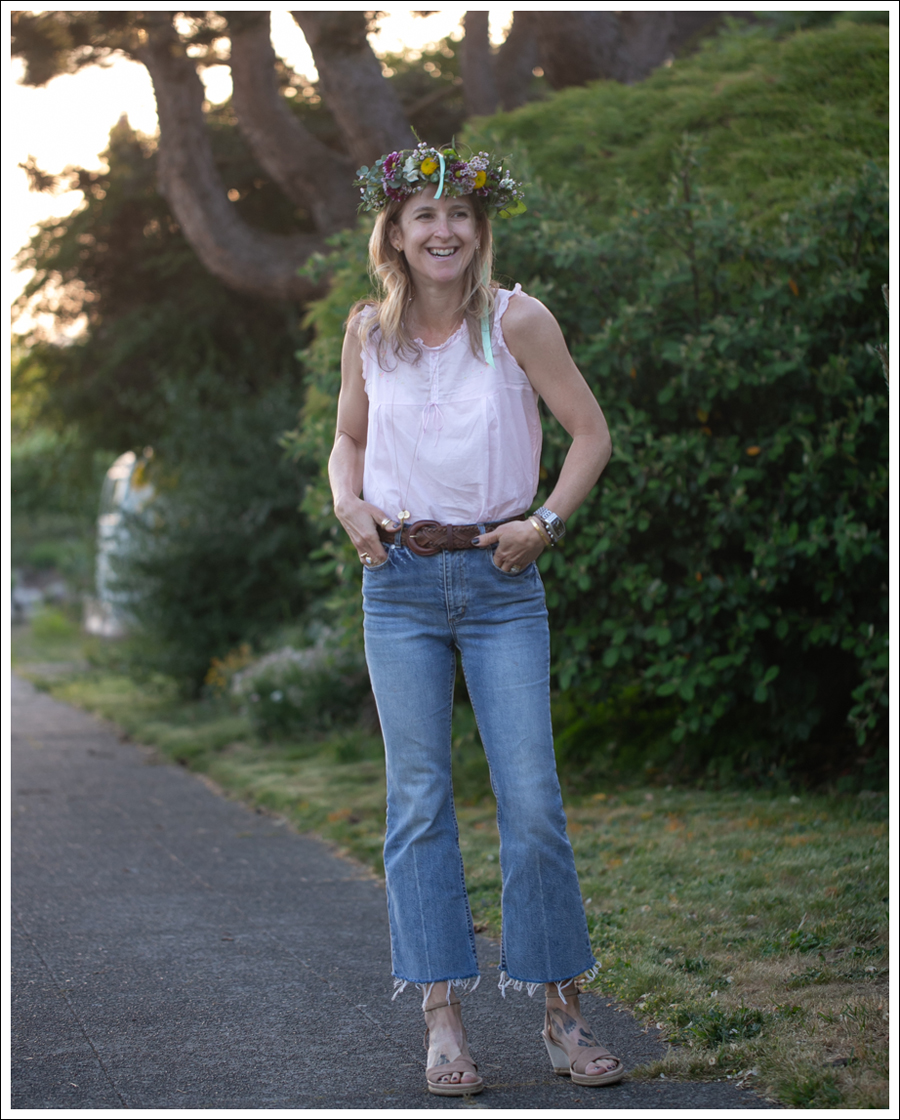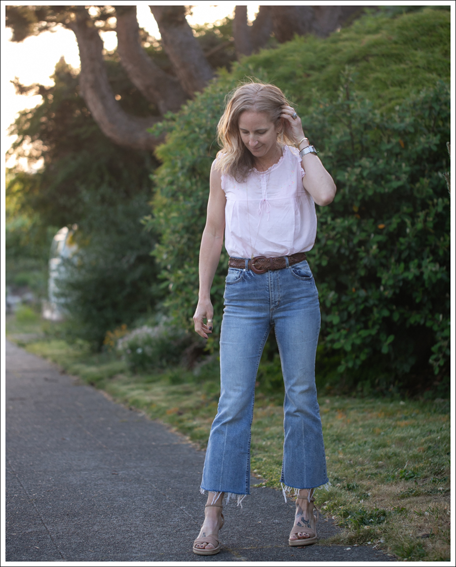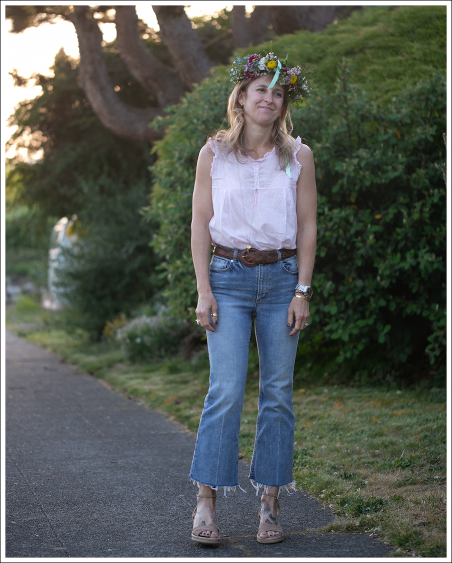 SO…vintage top, my fav high waisted crop flares, and some comfy sandals-DONE!