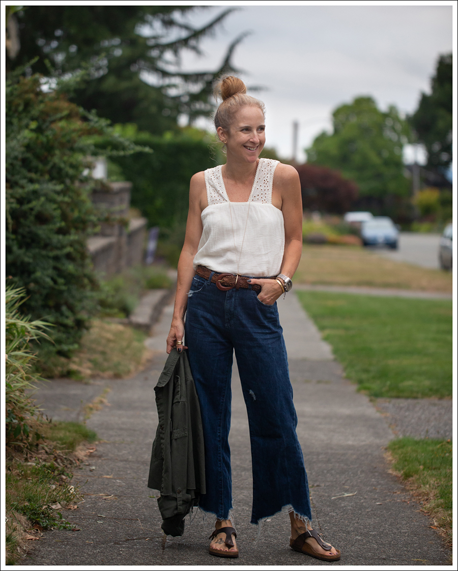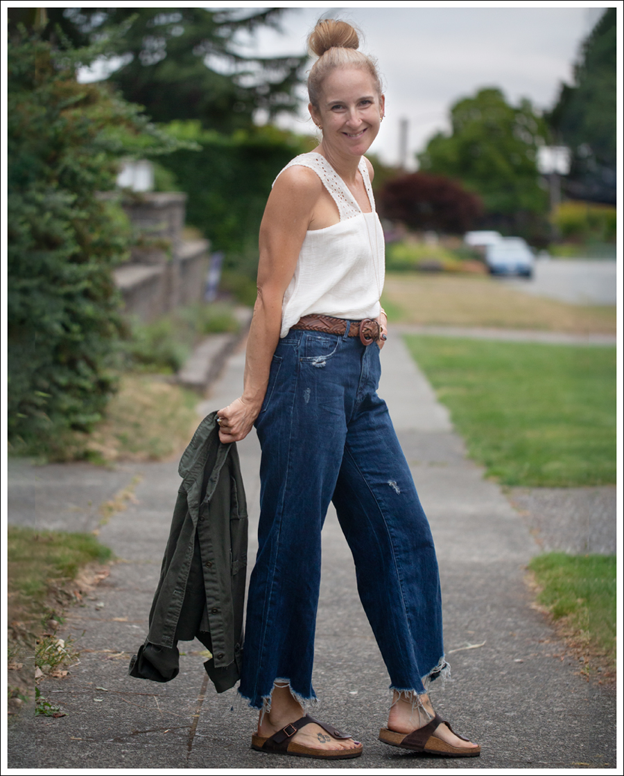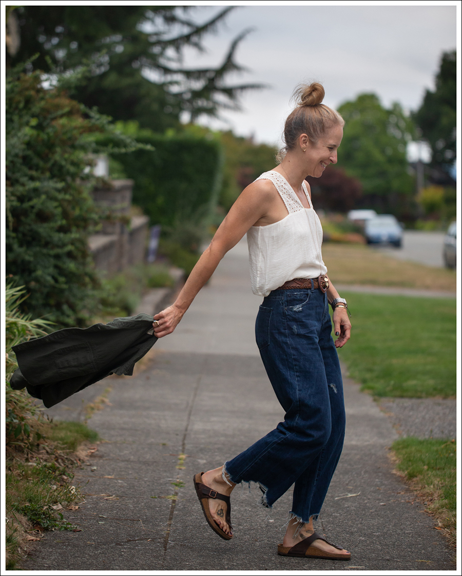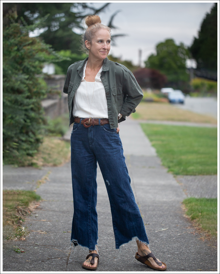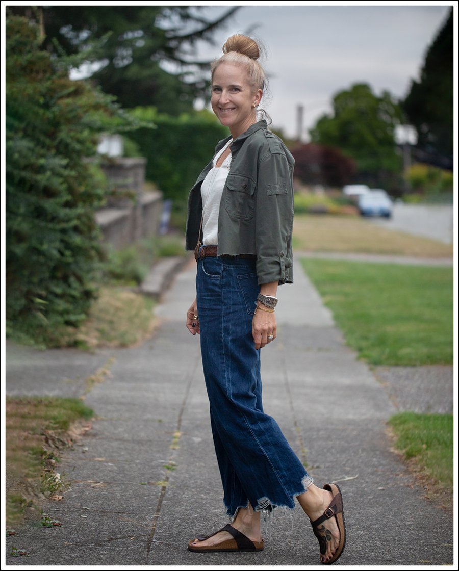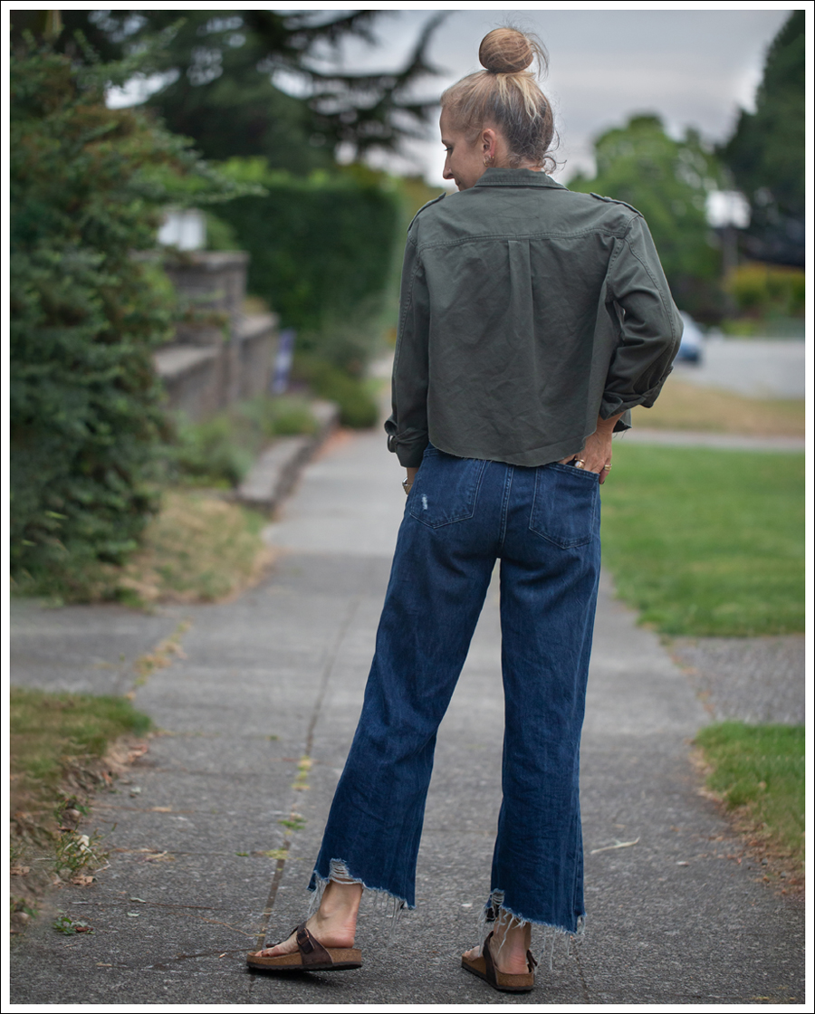 I brought this “jacket” that I recently thrifted and cut. I’ve been wanting a cropped army jacket for a while. I saw this one thrifting a few weeks ago during a 50% off sale, and decided to buy it and chop it!