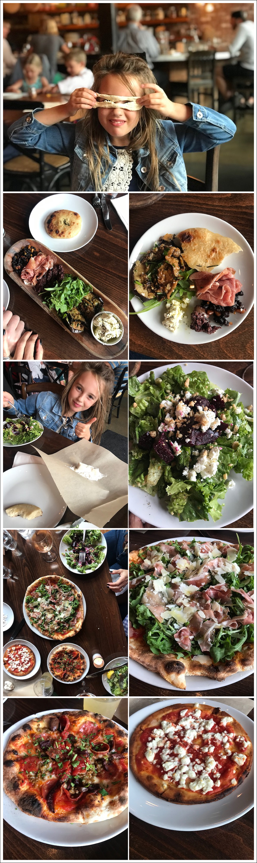 We walked to Mio Posto, one of our local family restaurants for dinner, because I love anything that’s within walking distance! It’s one of the many reasons we love our neighborhood! There are a few restaurants that cater to Maya’s gluten, dairy, egg free diet! And we love it too!