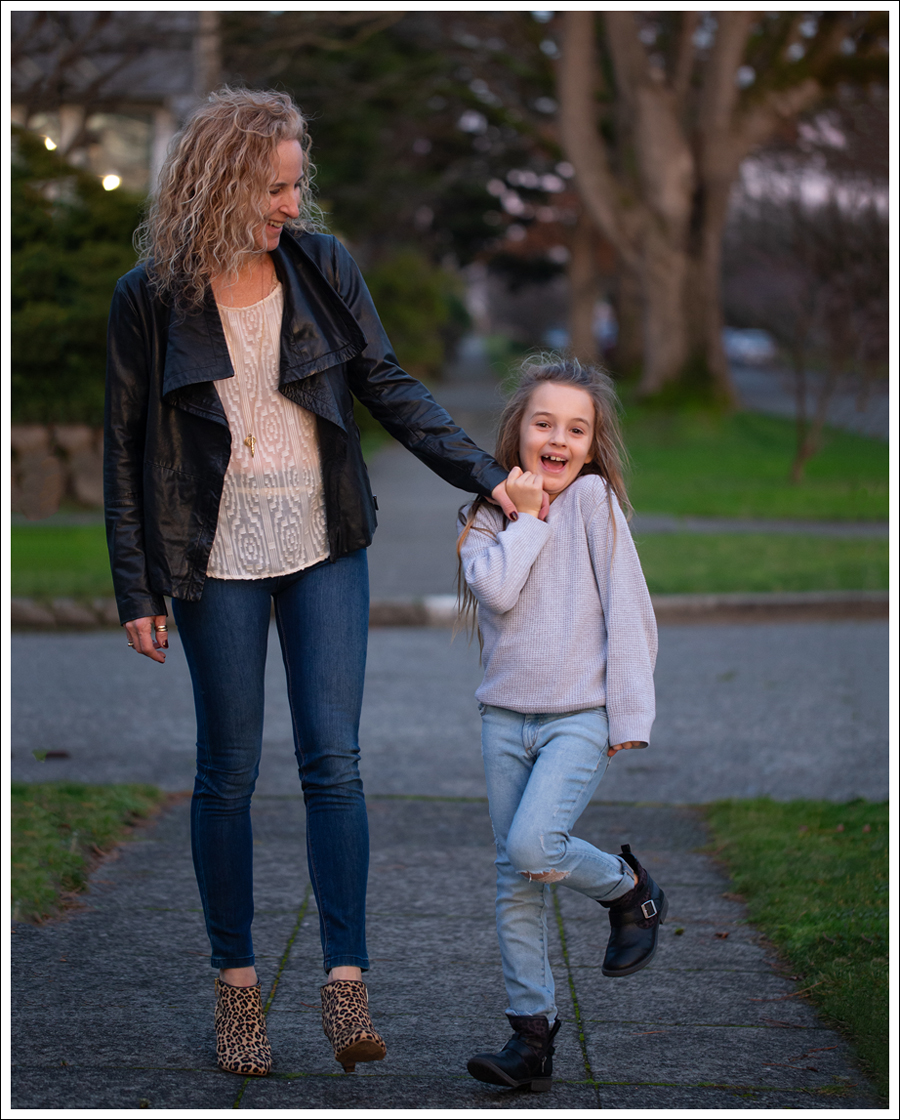 I even managed to lure Maya outside for a few! Messy after school hair and all 🙂
