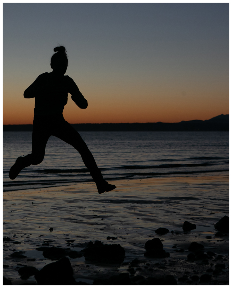 Sadly, as it got darker I couldn’t find my remote on the rocks! SO…I had Maya push the shutter for me as I jumped and I pushed the shutter for her, and then I merged them together in Photoshop.