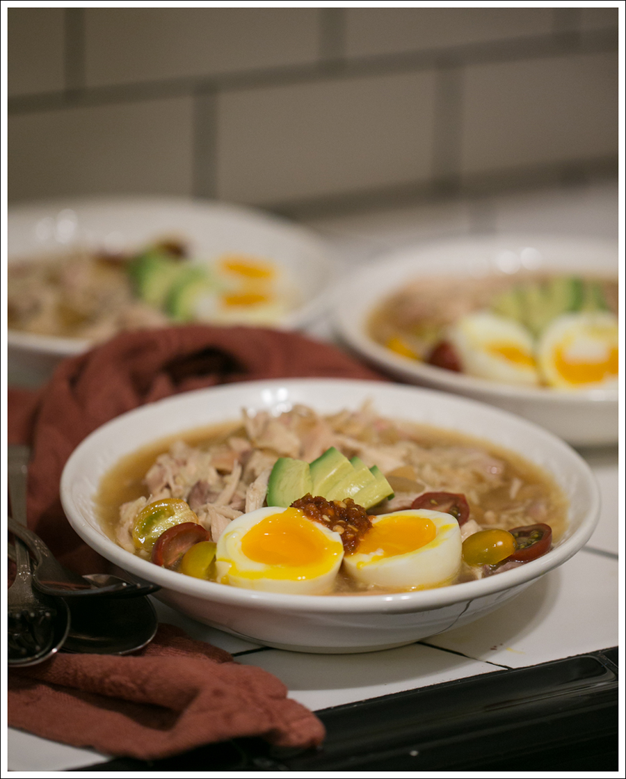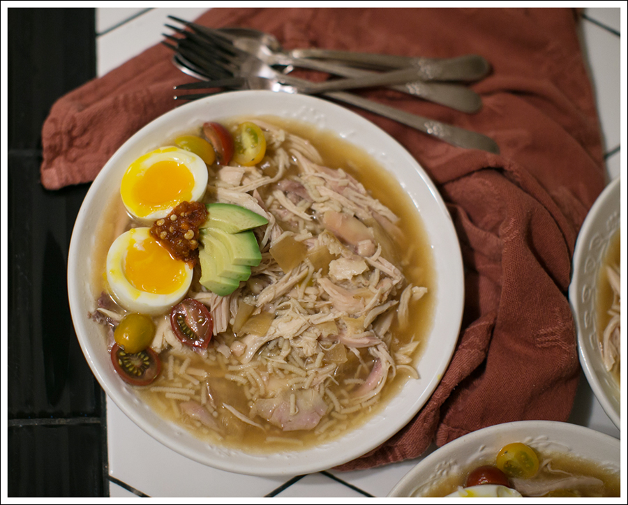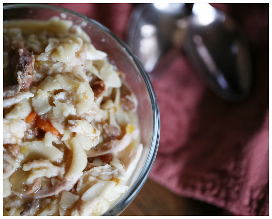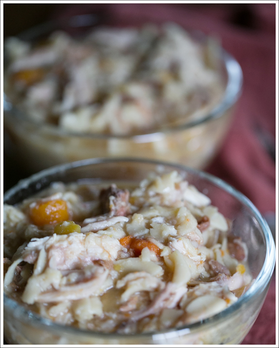I changed my original attempt at making this, because one chicken carcass didn’t seem to wield enough flavor-mostly because I don’t like adding a litany of seasonings!. Also, my original attempt used regular noodles, so don’t despair, if you want a hearty DELICIOUS recipe, that is not Whole30…it would be delicious with any kind of noodles! And would be even more so with the two carcass addition!