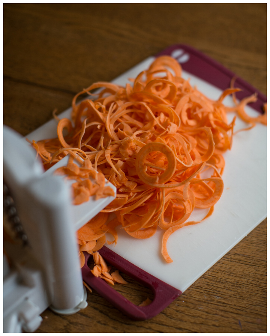- Meanwhile…spiralize your sweet potato. You have plenty of time, so no rush on doing it 🙂