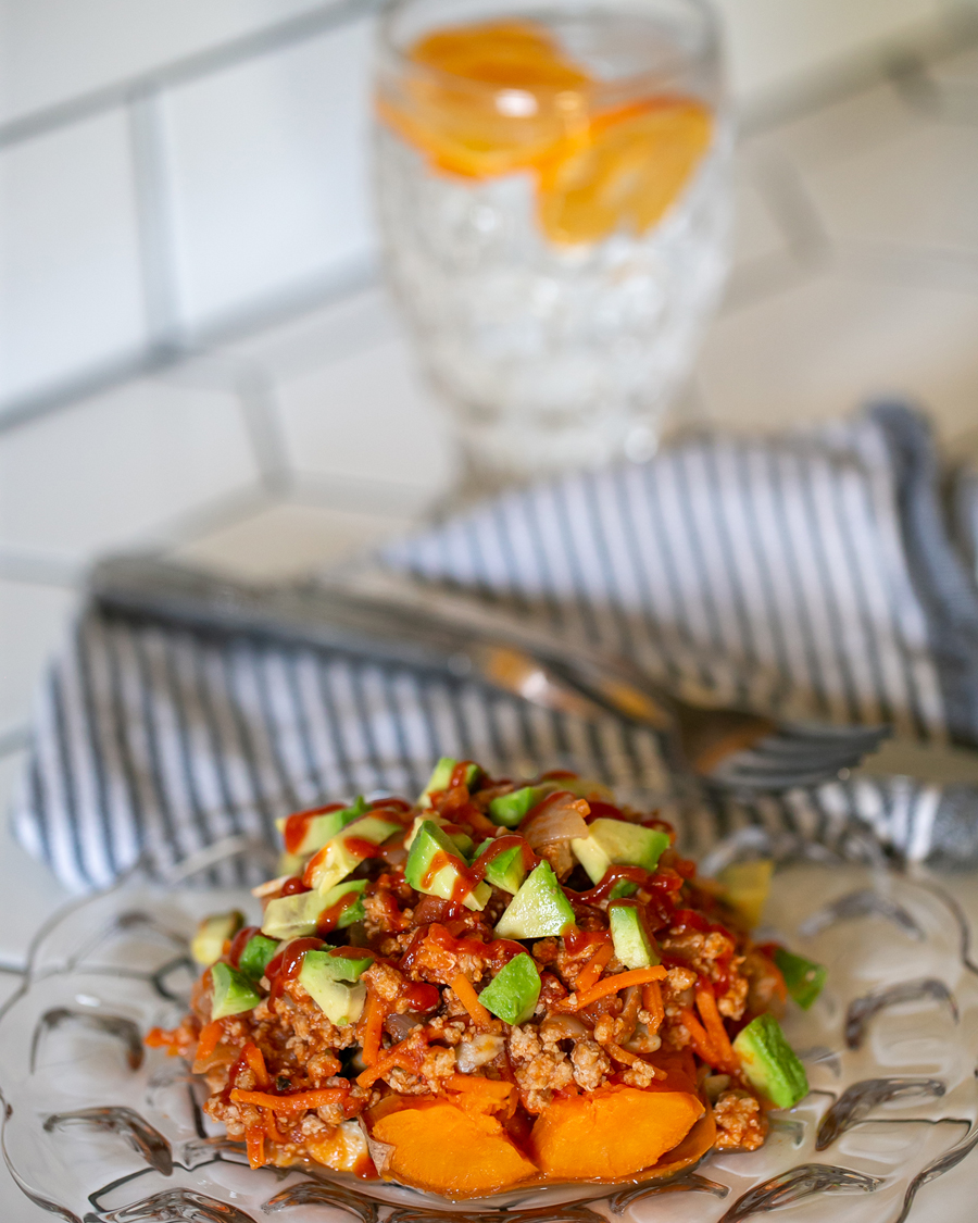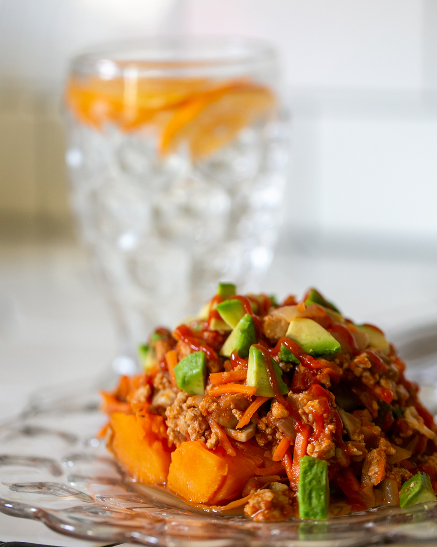 - 1 Sweet potato spiralized to make “noodles” . Could also do any veggie or use any other kind of noodle! I cannot even tell you how easy it is to do this! Less than 2 minutes.