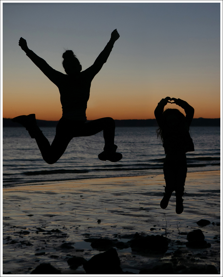 Sadly, as it got darker I couldn’t find my remote on the rocks! SO…I had Maya push the shutter for me as I jumped and I pushed the shutter for her, and then I merged them together in Photoshop.