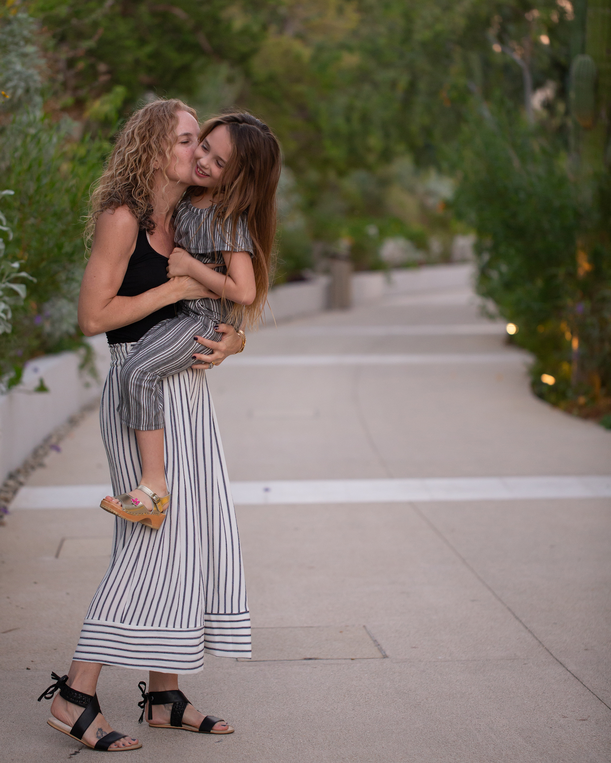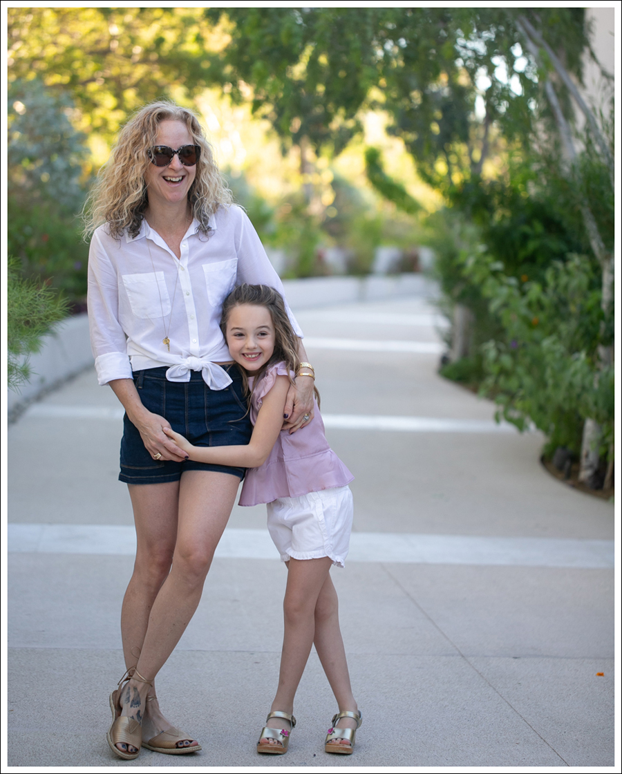 And these high waisted dark denim shorts were super versatile too!  They can be somewhat dressed up, or totally casual with tank and flip flops! I honestly don’t know who I had more fun packing for though…me or Maya. I’d totally wear her outfit too! 💜 Pose…art directed by Maya 🙂 Loooooove this next one!!