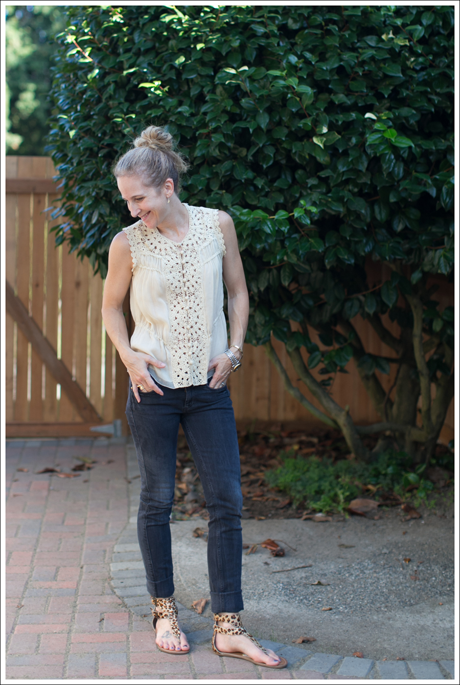 So the inseam on these J Brand jeans is a little long (even though I’m 5′ 8″, my legs are the size of someone who is at best 5′ 6″). At first I thought I couldn’t make them work, but then…I kind of like them a little unzipped. Thoughts??
