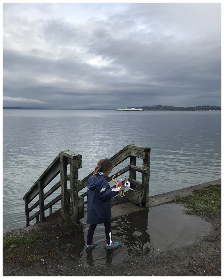 Even in the rain. REI rain jacket…less than $5 at the thriftstore! Sadlly…the shoes aren’t waterproof, but also thrifted, so…