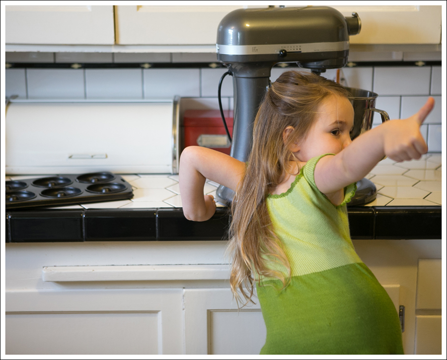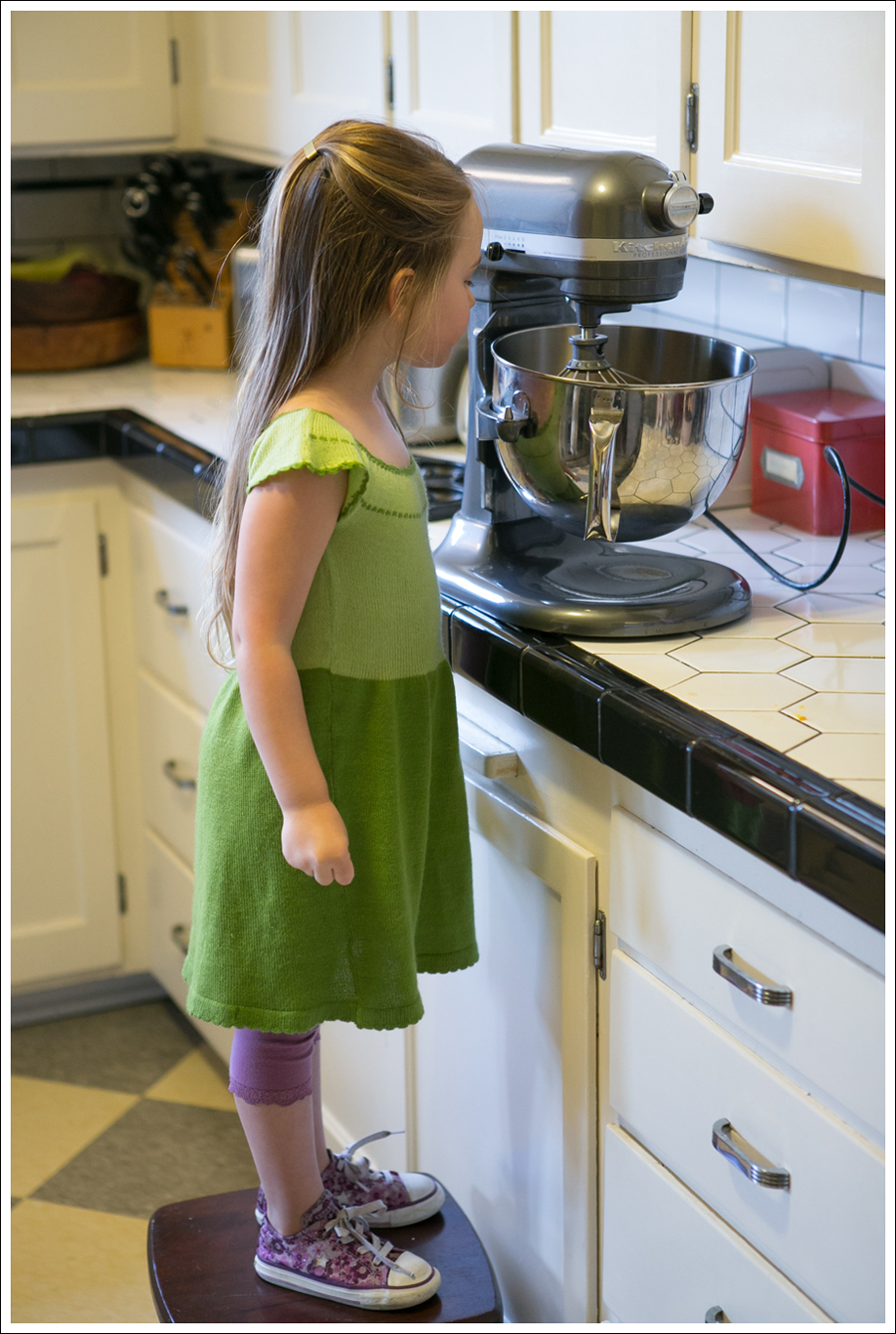 I took this with my phone, as I didn’t have a lot of extra time to take pics while we were baking. Super easy to let kids help you zest! She also loved working our Vitamix!
