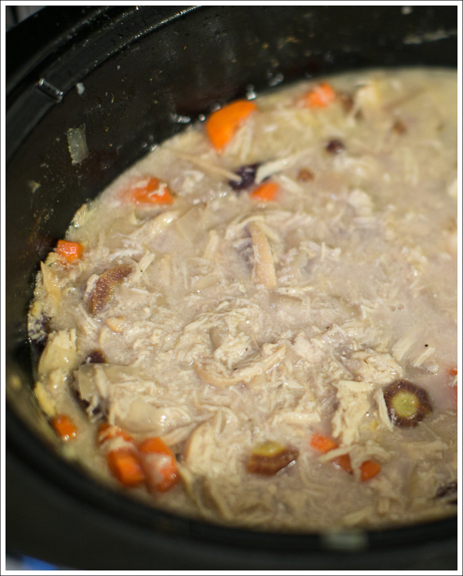 - Add shredded chicken back in and let sit on warm until dinner!