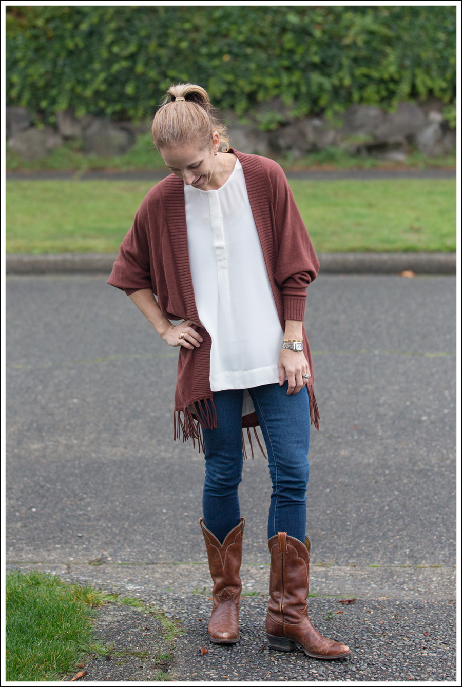 Fringe sweater + Cowboy boots