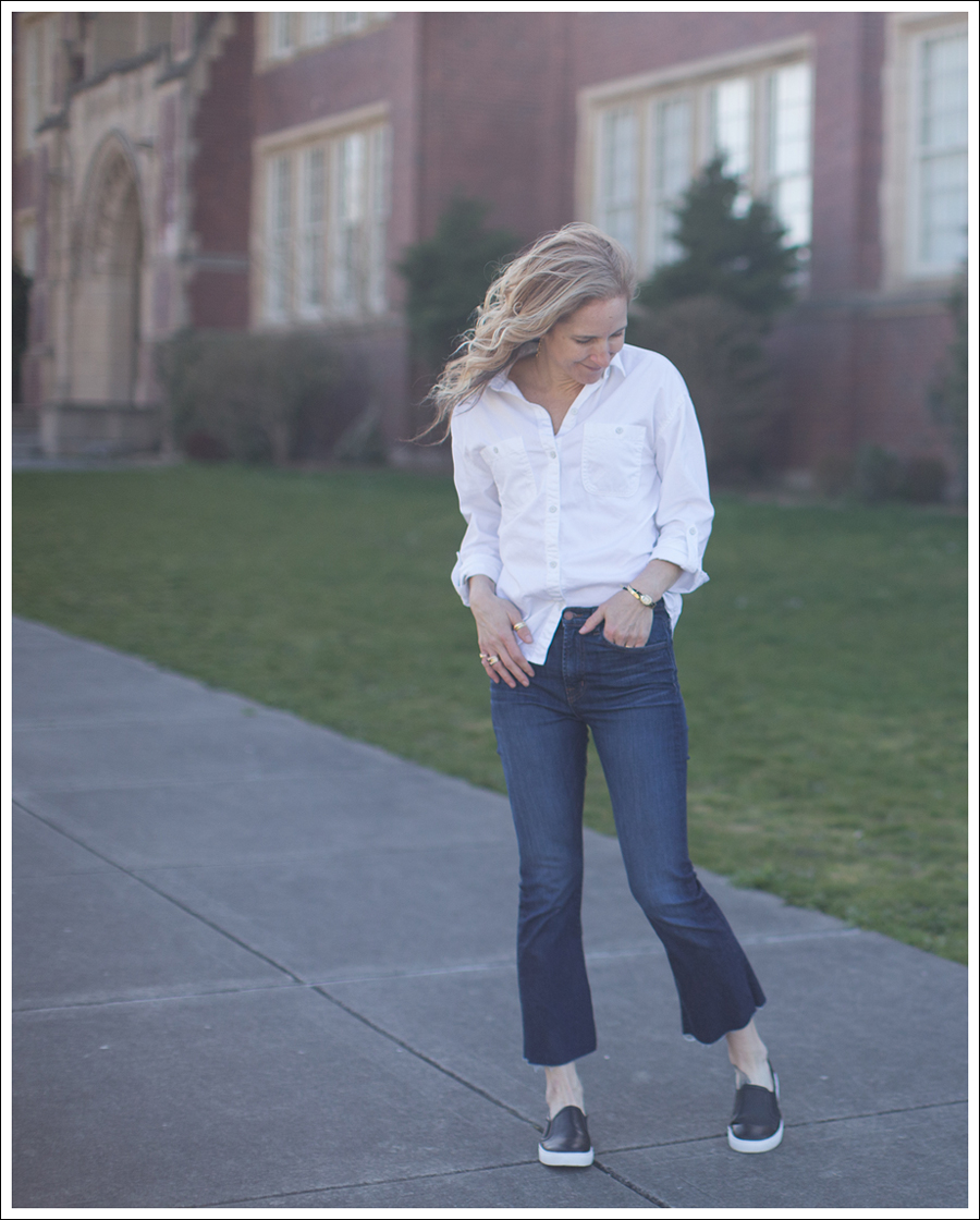 White Button Down + High Rise Crop Flares (Classics for the WIN!)