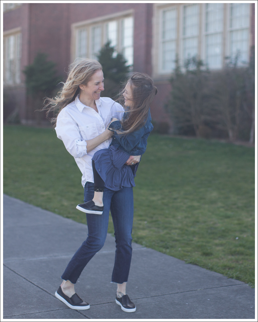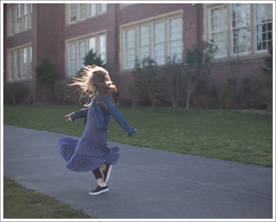 This next four shots literally happened in less than a minute.  Taking images with a tripod isn’t always the easiest, but the remote trigger taking a shot every second for 10 seconds sure is! I flipped our position and then got these! I managed to convince Maya to do ONE twirl picture by herself…